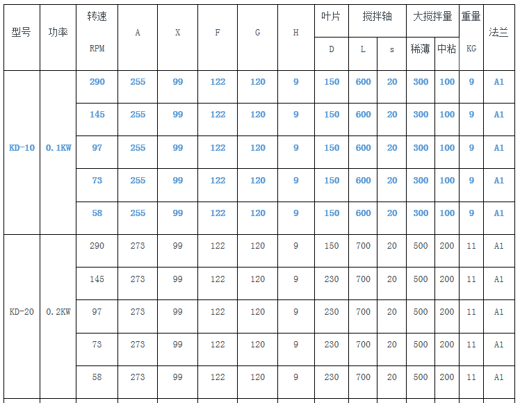 PE加藥桶配用電動攪拌機技術參數--攪拌機尺寸表(單位:mm)