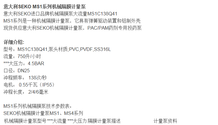 SEKO賽高M(jìn)S1系列機(jī)械隔膜計(jì)量泵