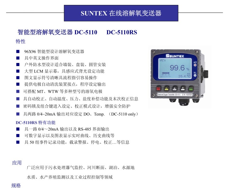 SUNTEX溶解氧儀變送器DC-5110RS配電極TriOxmatic690-7