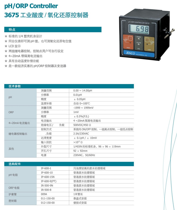 工業(yè)PH/ORP變送器3675 任氏/JENCO酸度/氧化還原監(jiān)測(cè)儀表(單機(jī))