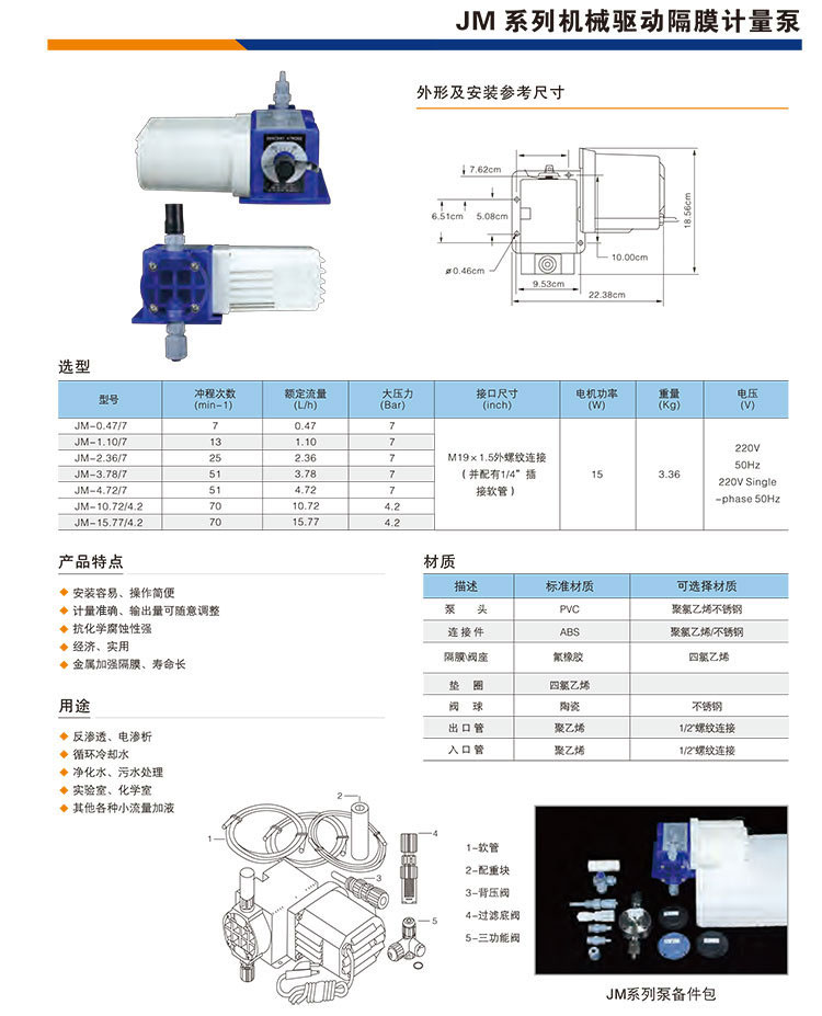 • 顏色分類: JM-0.47/7(PVC泵頭) JM-1.10/7(PVC泵頭) JM-2.36/7(PVC泵頭) JM-3.78/7(PVC泵頭) JM-4.72/7(PVC泵頭) JM-10.72/4.2(PVC泵頭) JM-15.77/4.2(PVC泵頭)