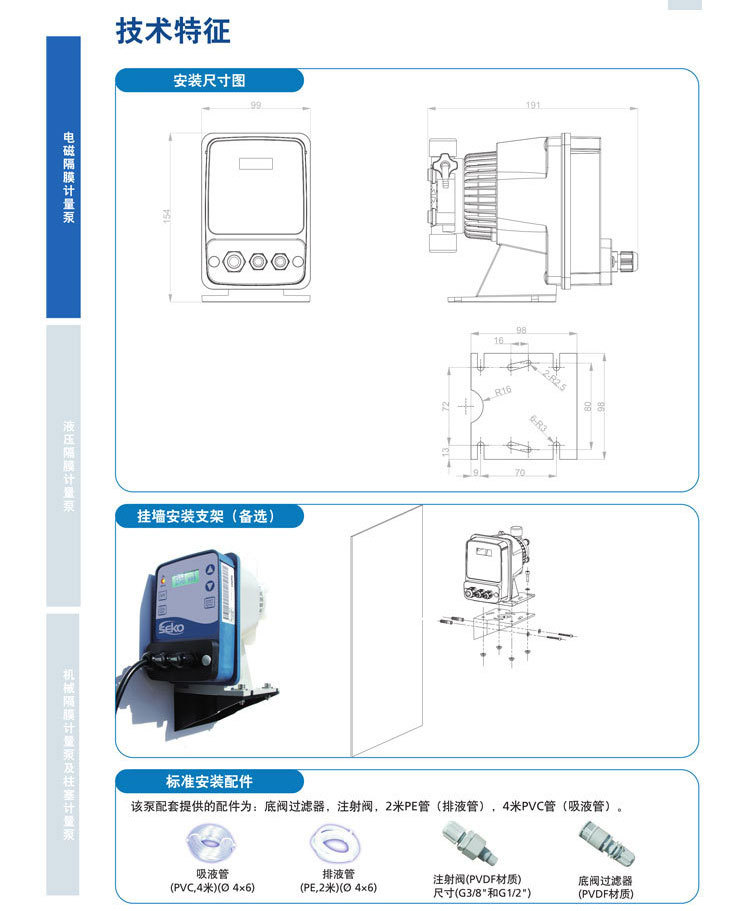 賽高seko電磁隔膜式計(jì)量泵DMS200AHP0800小型泳池阻垢劑