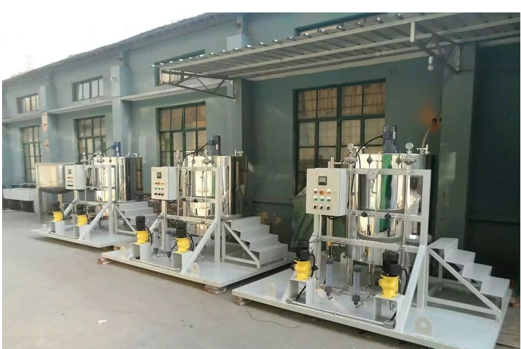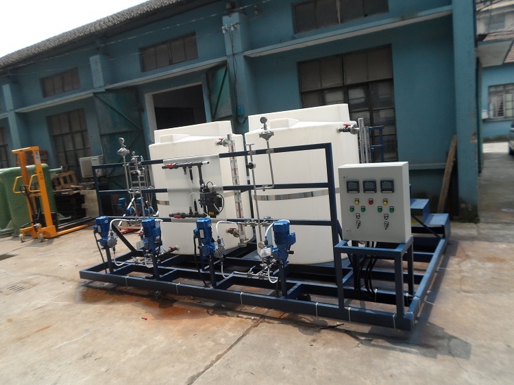 該裝置裝置配帶控制柜,可采用PLC控制或變頻控制。控制柜設(shè)置了低液位停泵、計量泵及攪拌機(jī)故障聲光報警等功能。