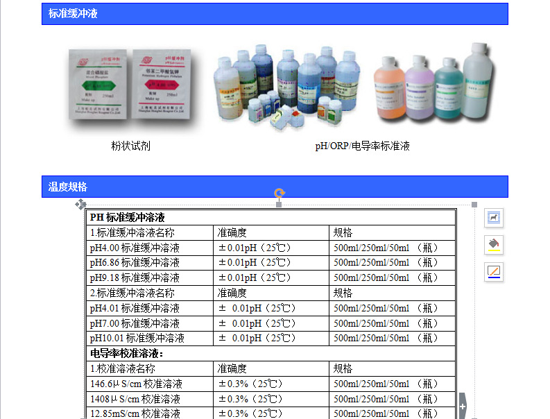 緩沖液與保存液非常重要,尤其對(duì)于昂貴的設(shè)備,其傳感器(如PH電極)缺乏適當(dāng)?shù)谋pB(yǎng),就無法發(fā)揮它 優(yōu)的功能,比如說使用壽命,精度等。我們提供的校正液均有純度等級(jí) 高的試劑,準(zhǔn)確稱量,嚴(yán)格按照實(shí)驗(yàn)室操作規(guī)程配制而成。