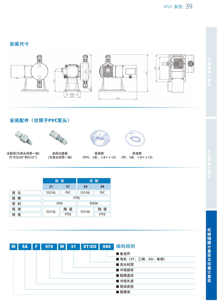 (SEKO賽高) MSA系列PVC/不銹鋼泵頭