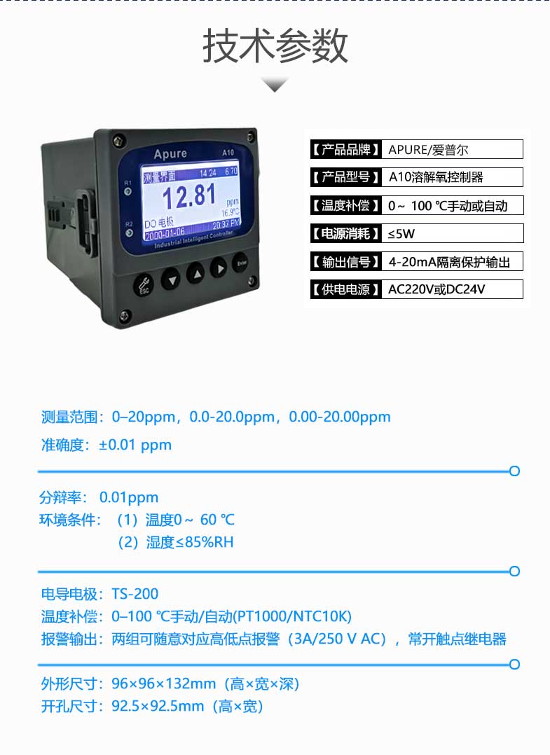 愛普爾Apure溶氧儀A10DO工業(yè)在線溶解氧控制器多功能水質(zhì)檢測(cè)儀