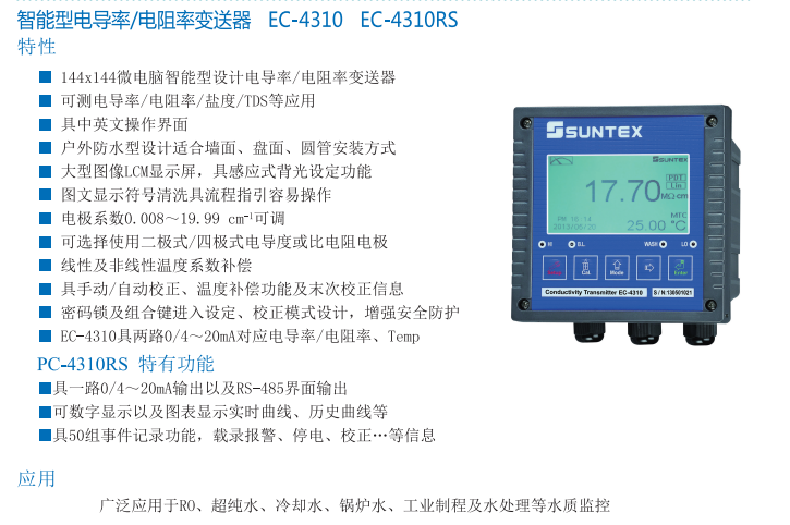 (SUNTEX)智能型電導(dǎo)率儀EC-4310 EC-4310 RS