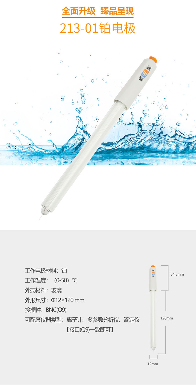 雷磁實(shí)驗(yàn)室金屬電極 213-01型鉑電極傳感器探頭玻璃外殼材質(zhì)