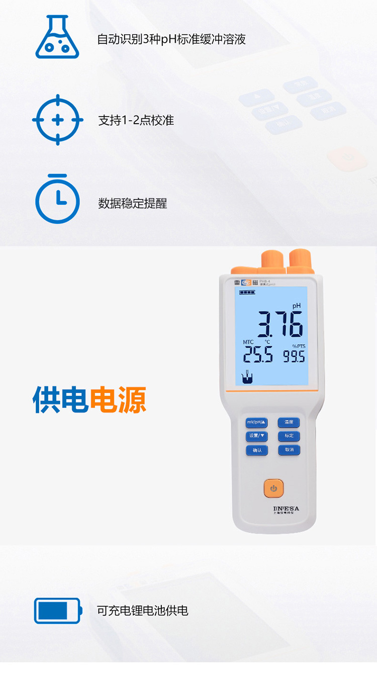 雷磁基礎(chǔ)款PHB-4型便攜式PH計(jì)標(biāo)配套裝手動(dòng)溫度補(bǔ)償液晶顯示