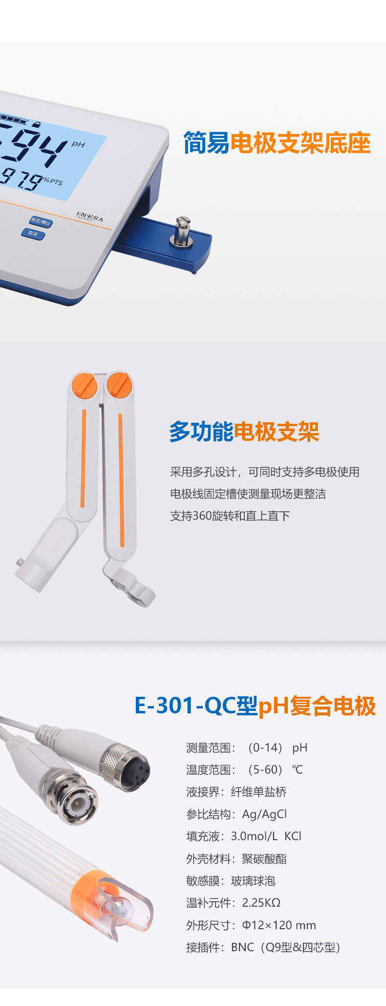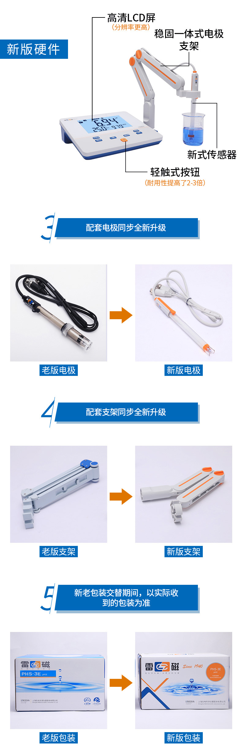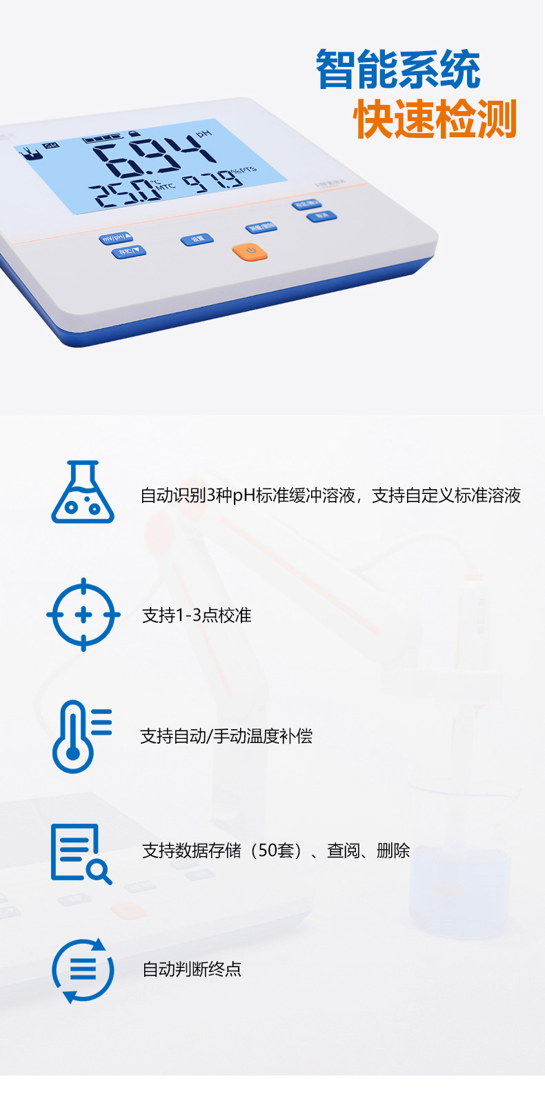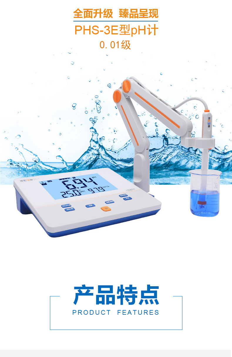 雷磁(leici)PHS-3E型實驗室PH計標配套裝手動自動溫補液晶顯示酸度計