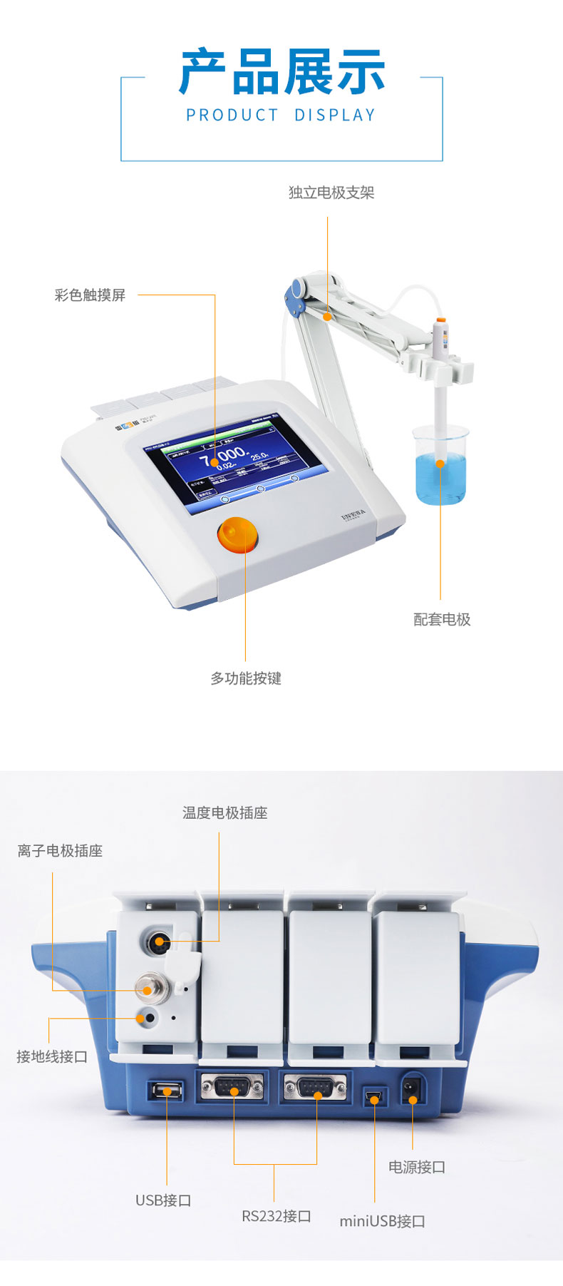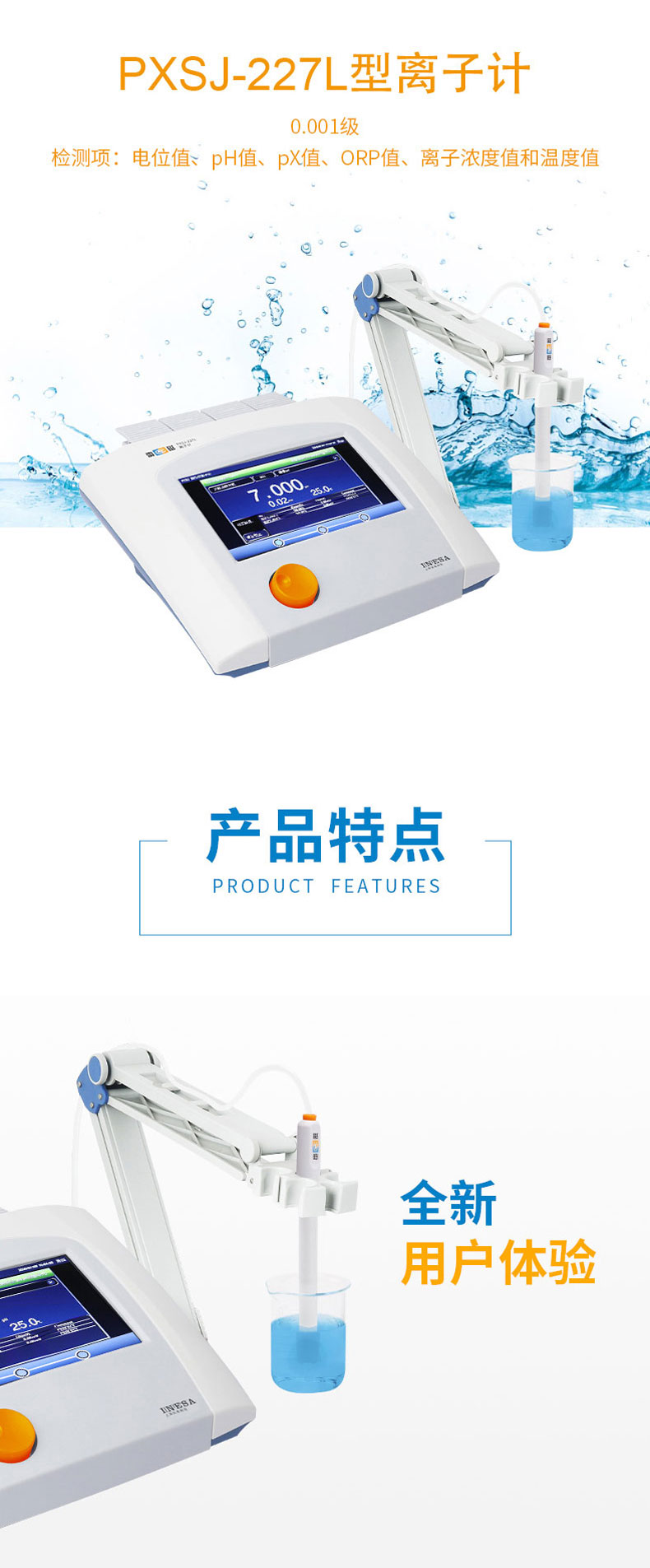 雷磁(leici)PXSJ-227L型離子計(jì)水質(zhì)分析儀液晶顯示屏中英文操作自動溫補(bǔ)