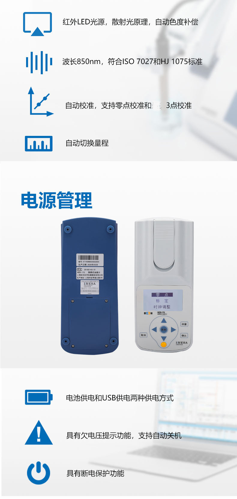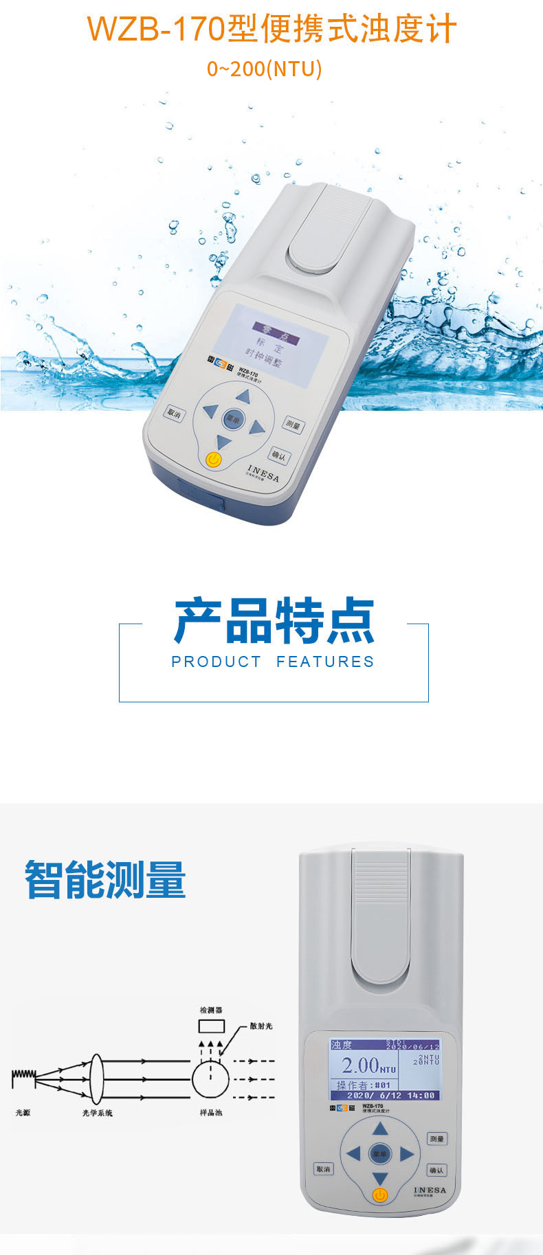 雷磁(leici)WZB-170型便攜式濁度計(jì)標(biāo)準(zhǔn)水質(zhì)分析儀量程自動(dòng)切換濁度儀