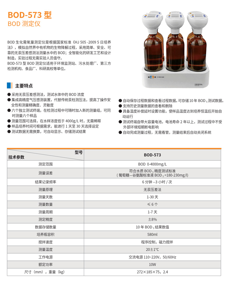 雷磁水質(zhì)分析儀BOD-573型BOD測定儀無汞壓差法水體BOD濃度測試儀