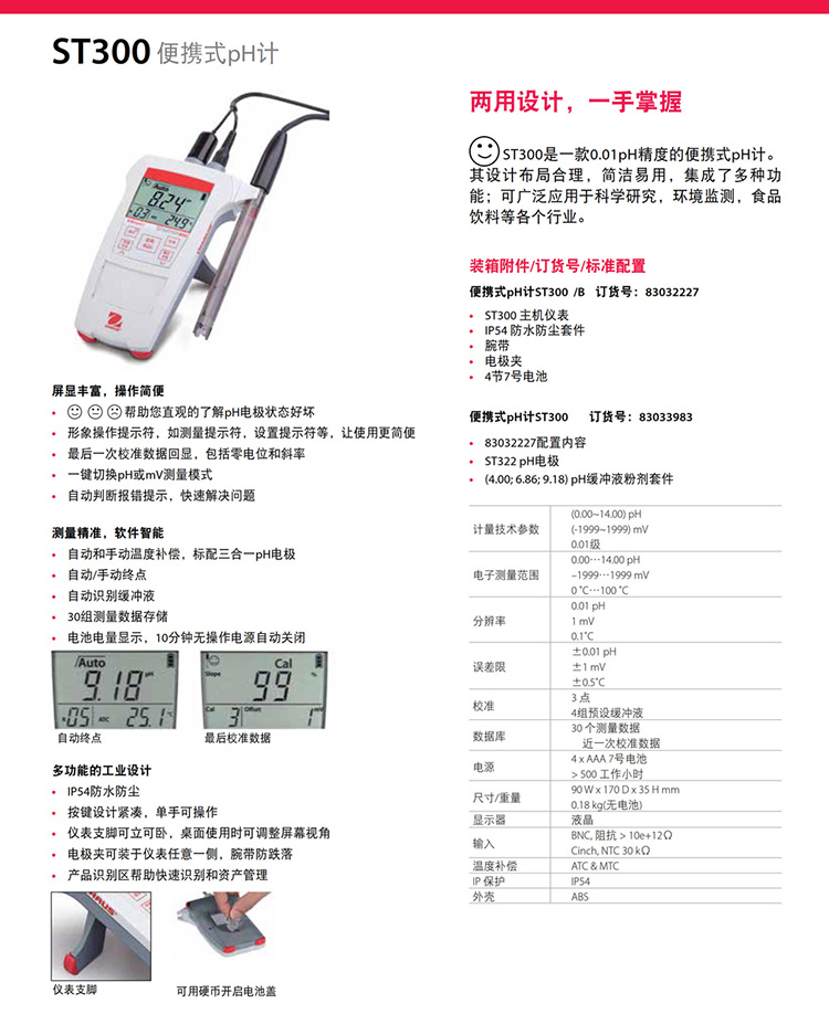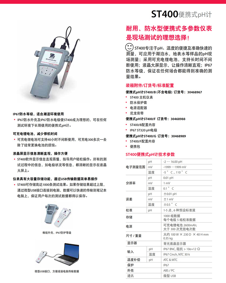 奧豪斯便攜式pH計ST300/ST400防水防塵酸度計檢測儀數(shù)顯ph測定儀