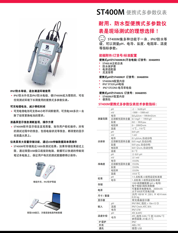 奧豪斯便攜式多參數(shù)儀表ST400M耐用防水多參數(shù)水質(zhì)分析儀監(jiān)測(cè)儀