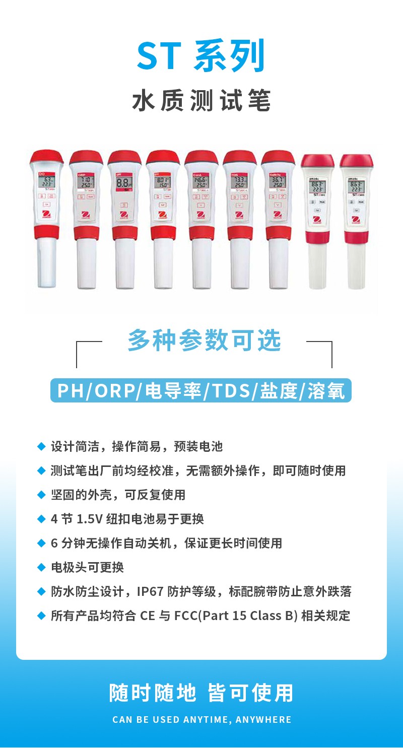 奧豪斯水質(zhì)測(cè)試筆ST系列便攜式多參數(shù)/PH/ORP/電導(dǎo)率/TDS/鹽度/溶解氧水質(zhì)測(cè)試儀