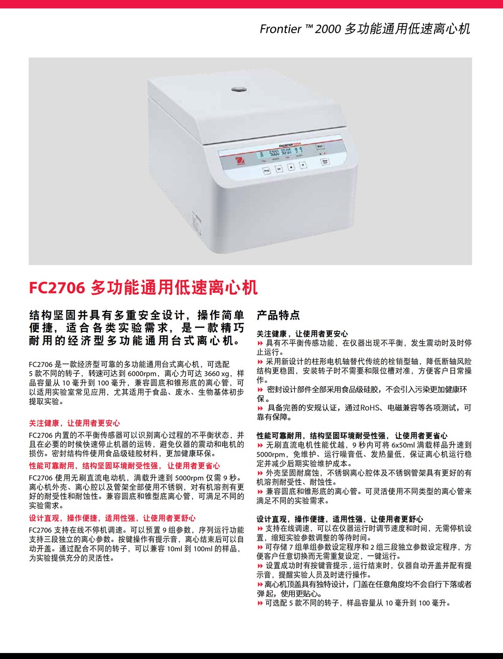 OHAUS奧豪斯FC2706多功能通用低速離心機(jī)實(shí)驗(yàn)室經(jīng)濟(jì)型臺(tái)式離心機(jī)
