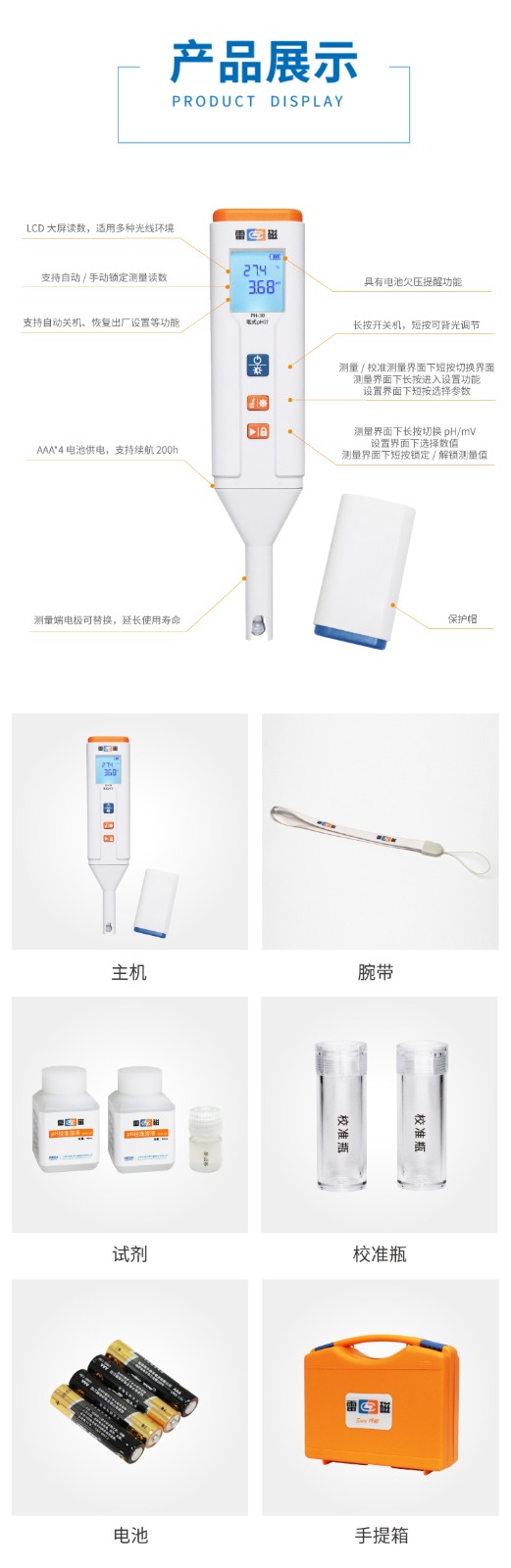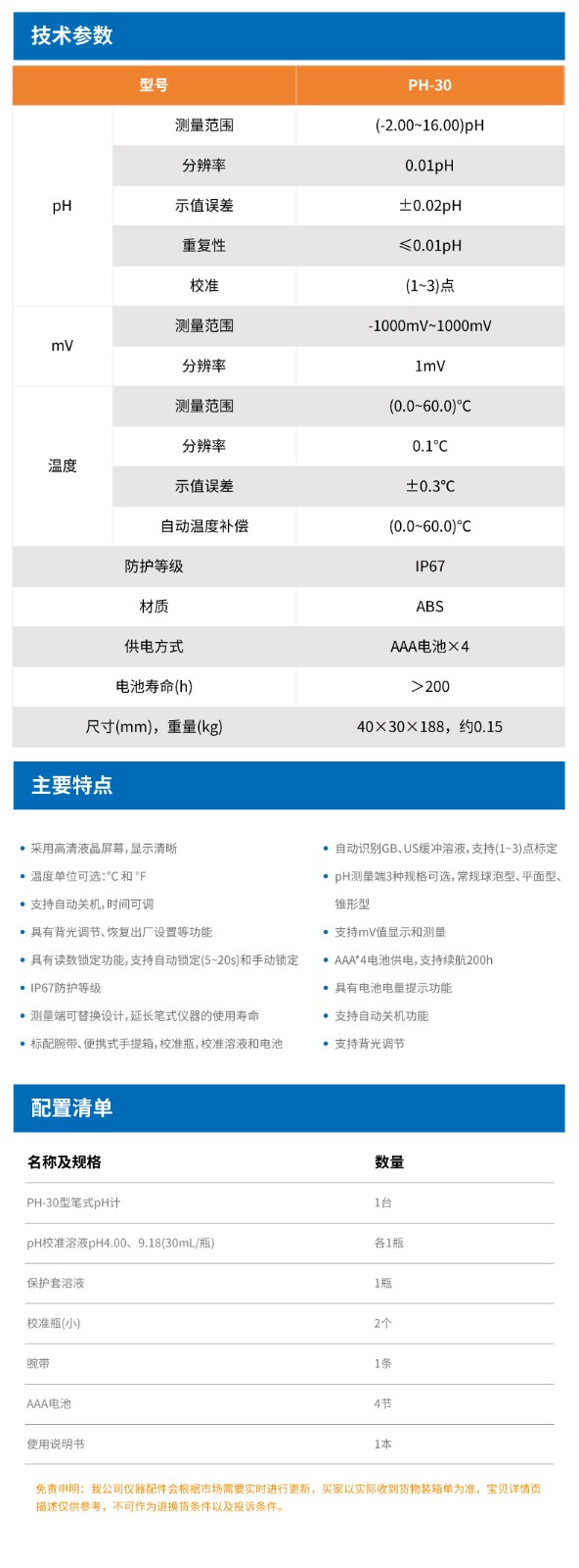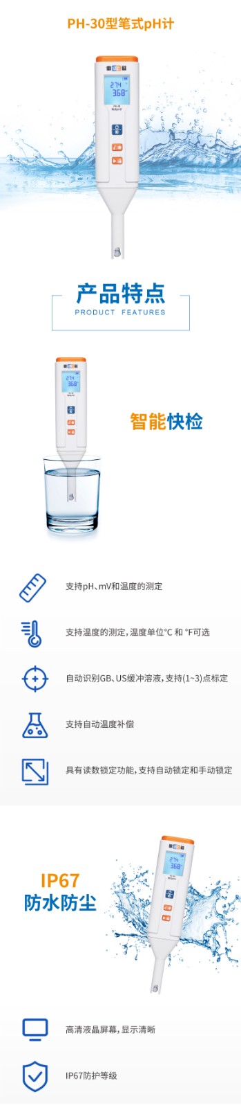 【雷磁】PH-30型筆式pH計(jì)(球泡型)水質(zhì)檢測(cè)酸度計(jì)