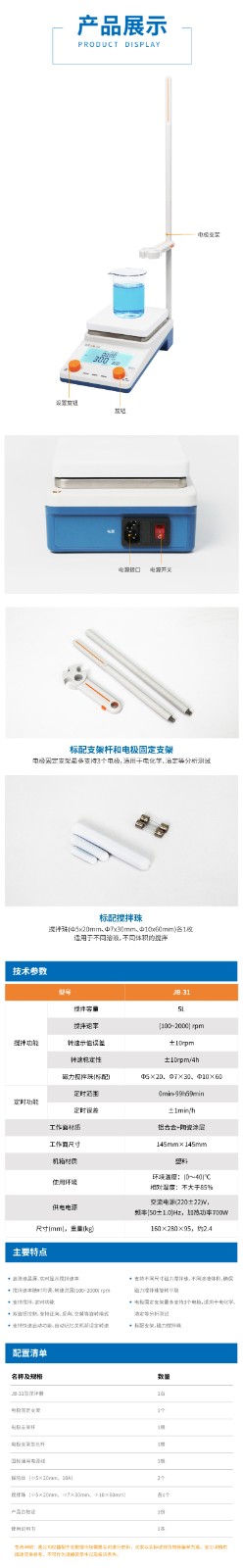 【雷磁】加熱恒溫磁力攪拌器控溫實驗室攪拌機(jī)JB-31型