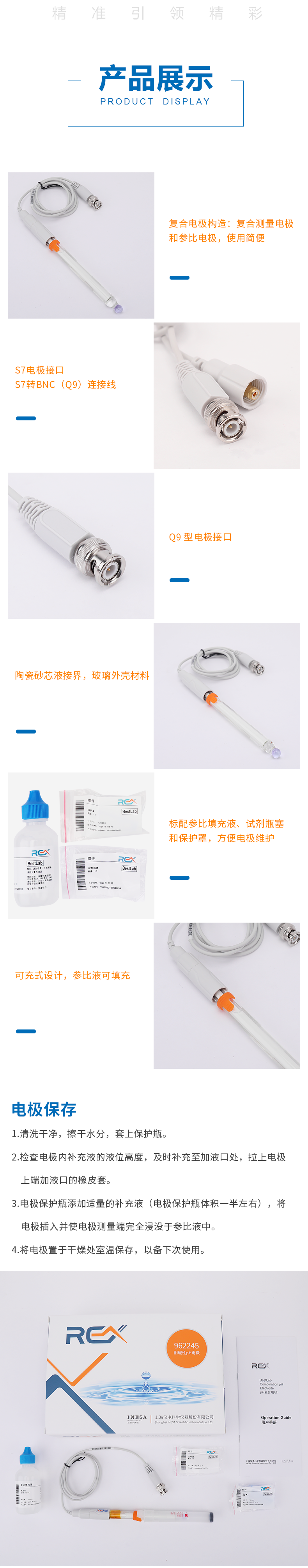 【雷磁】高端ph電極高精度 962245耐堿性ph電極