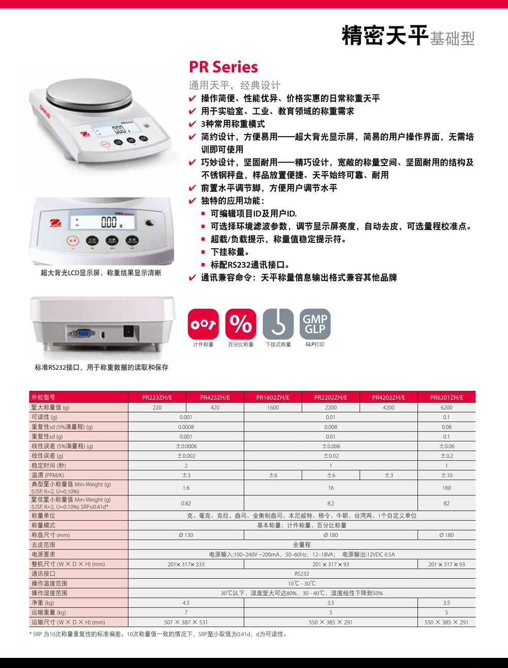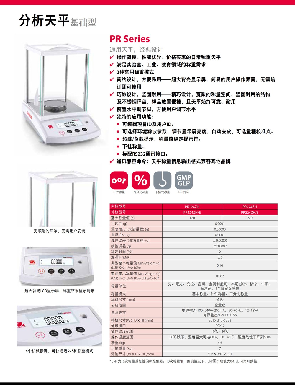 奧豪斯稱重天平PR系列分析天平實(shí)驗(yàn)室基礎(chǔ)電子秤工業(yè)通用精密天平