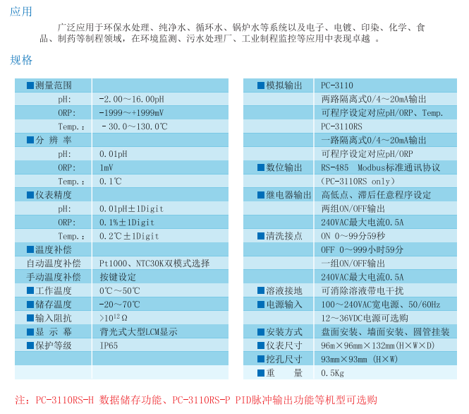 SUNTEX (中國環(huán)境保護(hù)認(rèn)證)智能型pH/ORP變送器PC-3110 PC3110RS